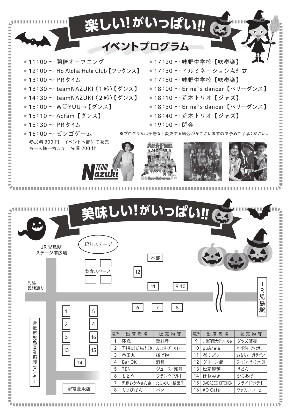 児島駅前広場にて、体験ワークショップや地元飲食店などが出店します。
