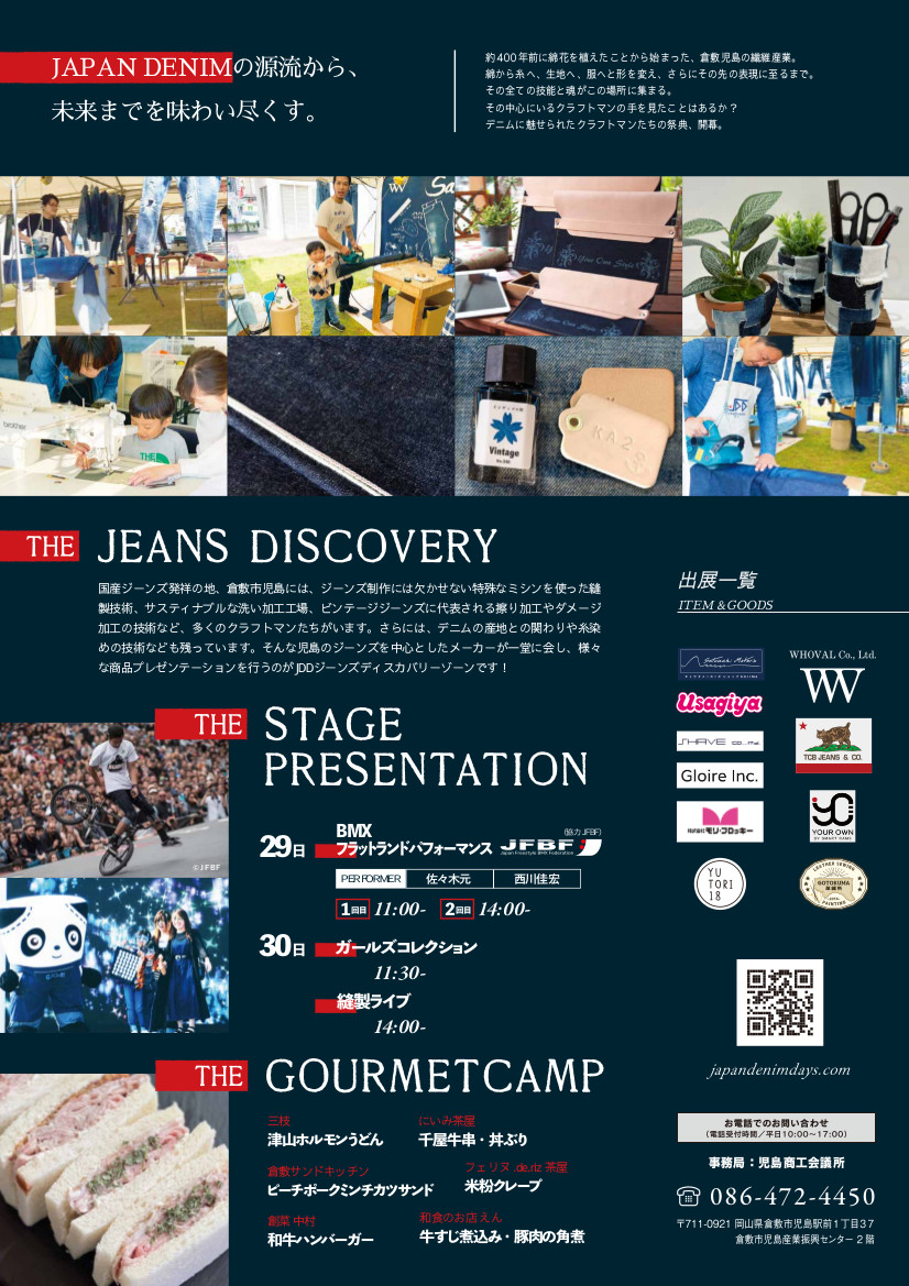 加工体験などのワークショップやファッションショーなど、デニムづくしの2日間をお楽しむください。