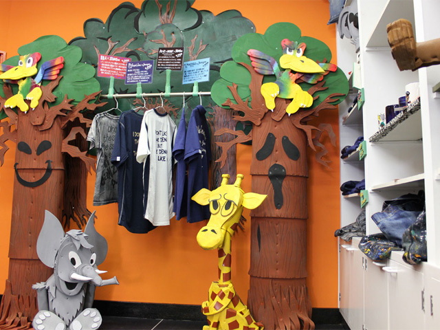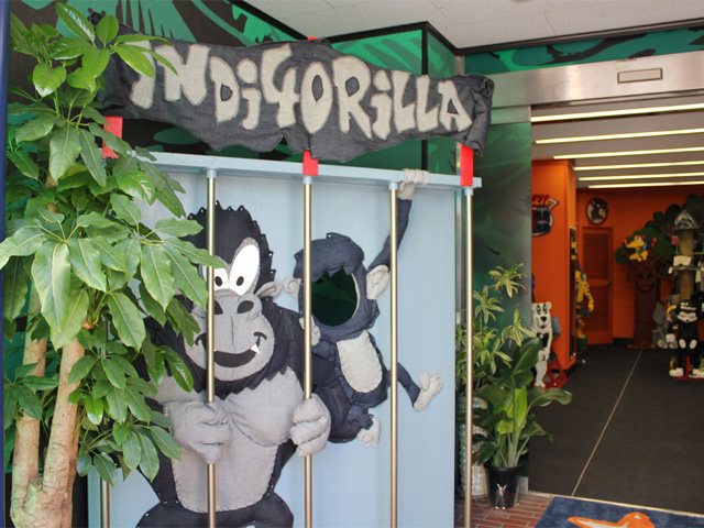 デニムのゴリラが迎える入り口。本当の動物園みたいな店です。