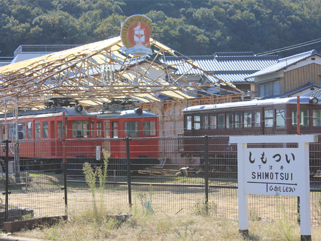 かつての下津井電鉄線の終着駅です。1991年の廃止後、客車8両、貨車3両が旧下津井駅構内で保管されています。保存車両は2002年から地元の有志により結成された「下津井みなと電車保存会」により、下津井電鉄の協力も得て維持整備活動がおこなわれています。(電話:JR児島駅観光案内所)