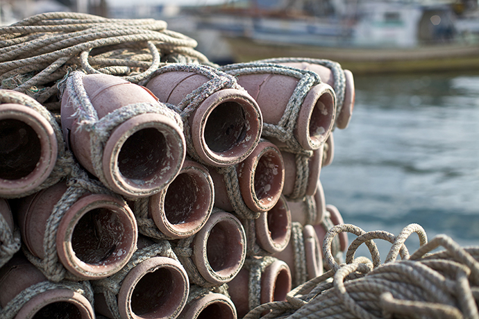 世界には蛸を食す文化をもつ国はあまりない。世界に国は数あれど、おとなりの韓国、そして地中海のイタリア、ギリシャ、ポルトガル、スペインなどくらいだという。そして日本は世界の6割の蛸を消費しているらしい。その日本の蛸の中で一番有名なのが下津井蛸、と言いたいところだが知名度では隣県の蛸が上だろう。タコ焼きという日本を代表する蛸料理をつくりあげた関西の知名度には勝てない。だが、下津井の蛸はなんといっても「味」で他の蛸を上回る。タコ焼きに入れるなんてもったいない蛸なのだ。これはもうひとえに海の恵み。備讃瀬戸は狭い海流の中に島々が点在し、早まった潮流が山・谷・平地の複雑に入り組んだ海底を造形した。そしてそれが魚類やその餌となる豊富なプランクトン、小貝や餌虫などのいわゆる「魚の底えさ」を発生させているのだ。港の近くでは11月頃からは蛸を天日干しした風景が見られ、風に踊る半透明の蛸が太陽に煌く。