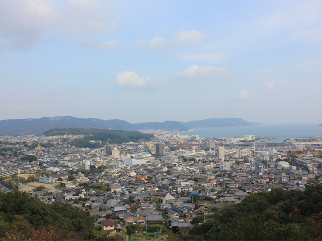 龍王山は全国各地にあるが、岡山県には特に多い。児島の龍王山は標高209m。高くはないが、さえぎるものがなく、山頂からは児島の市街地中心部をはじめ、瀬戸内海の島々が箱庭のように一望できます。