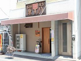 お好み焼 米八児島ジーンズストリートにあるお好み焼き店。カキや手長ダコなど、児島ならではの具が楽しめる -