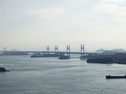 鷲羽山レストハウスから遊歩道を20分ほど登ると東屋があり、そこからは、瀬戸大橋を真下にご覧いただくことができます。